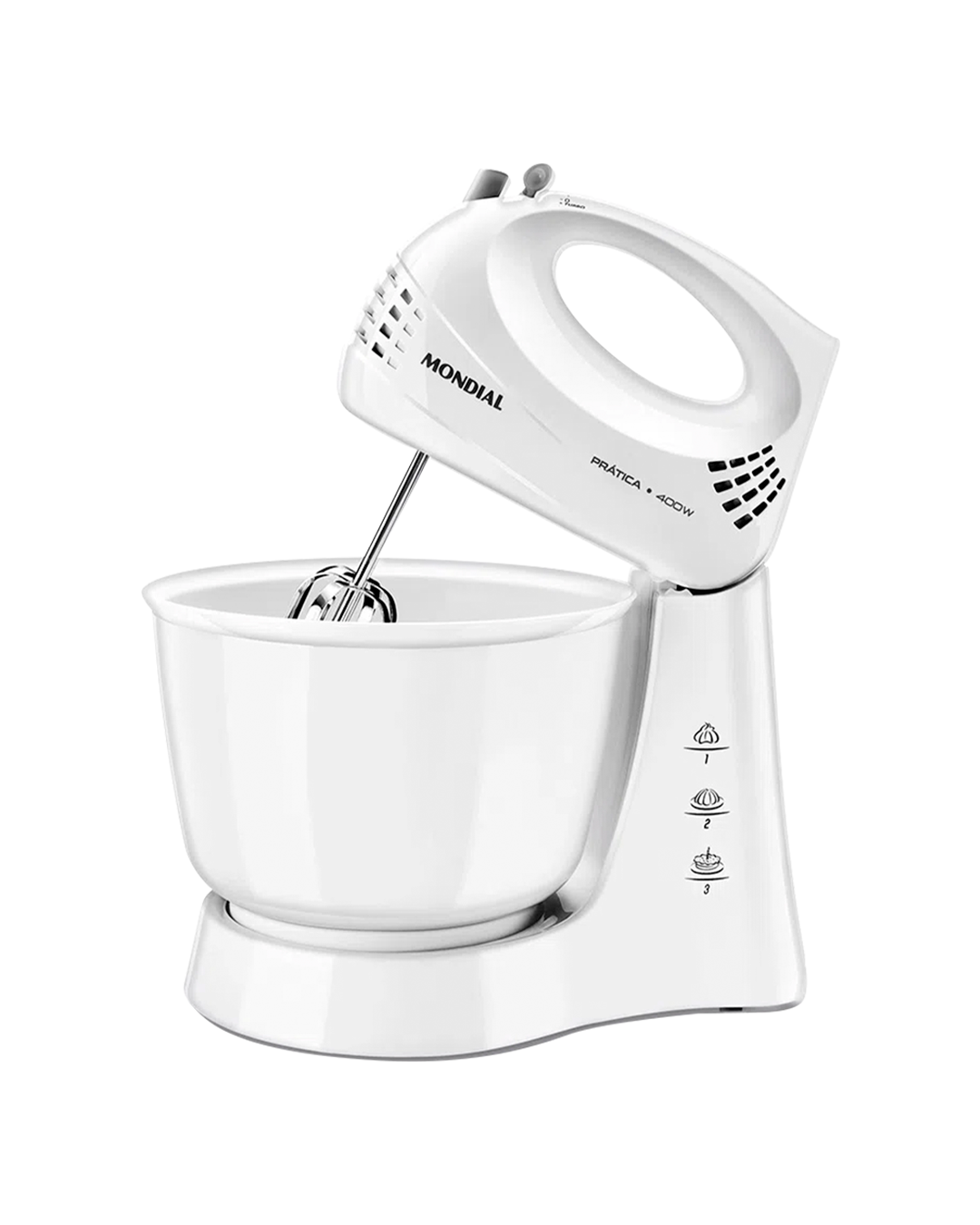 400W, 3 Velocidades + pulsar, Bol de 3.6L, 1 par de batidores en acero cromado.