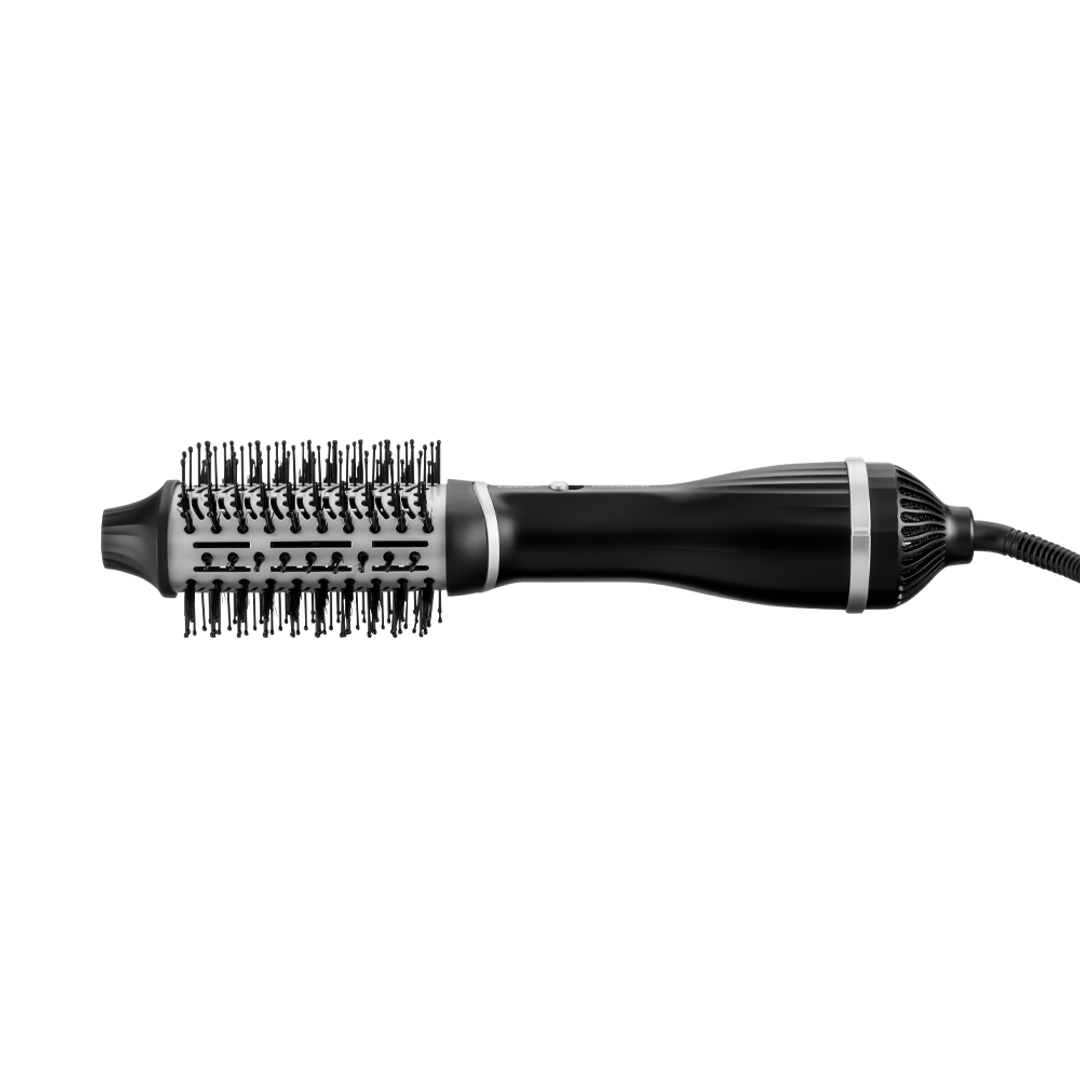 El sistema 2 en 1 que ofrece este dispositivo combina un secador y un cepillo secador, garantizando resultados sorprendentes y duraderos. Con 1200W de potencia, dos ajustes de temperatura y función de aire frío, este dispositivo es versátil y eficaz. Su cabezal removible facilita la limpieza, y el cable giratorio de 1,8 metros ofrece comodidad adicional. Además de su funcionalidad, su diseño compacto, ergonómico y atractivo hace que sea un aliado valioso en tu rutina de cuidado del cabello. Un todo en uno que se destaca por su eficiencia y estilo.