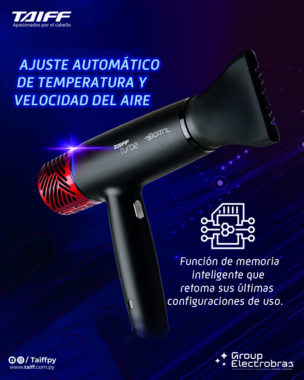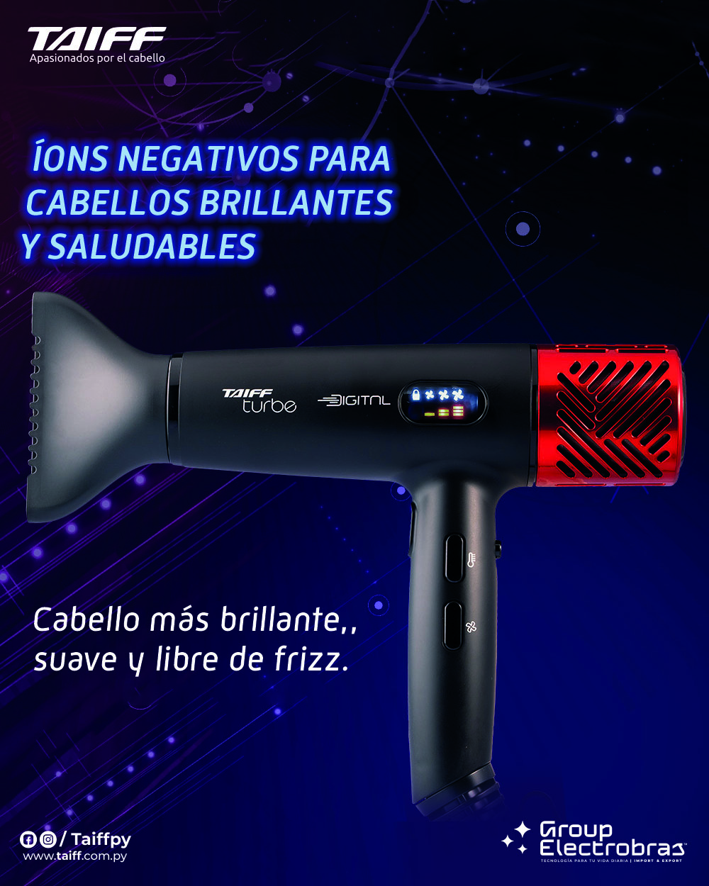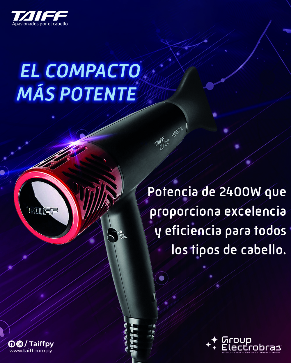 La potencia y el rendimiento excepcionales del secador TURBE DIGITAL lo convierten en la elección definitiva para los profesionales del cuidado del cabello, brindando la capacidad de manejar los más diversos estilos y técnicas con rapidez y precisión. Sin duda, una herramienta indispensable para quienes buscan lo mejor en potencia, agilidad y comodidad.